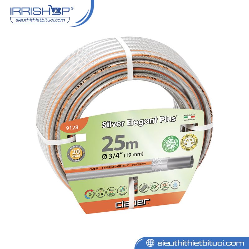 Cuộn Ống dẫn nước bạc Silver Elegant Plus 25m 3/4” Claber mã 9128 – Sản phẩm chất lượng cao từ Ý