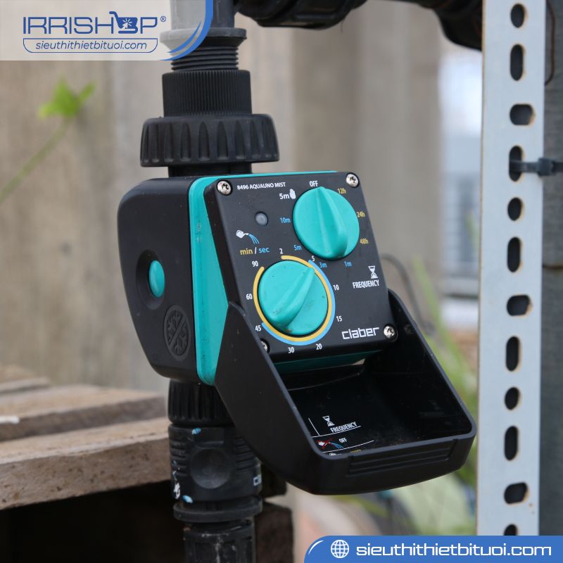 Bộ hẹn giờ tưới cây tự động, hay còn gọi là timer, là thiết bị thông minh dùng để cài đặt thời gian tưới nước cho cây một cách chủ động. Timer được xem như "bộ não" của hệ thống tưới tự động, với cơ chế tương tự như van điện từ, giúp tự động đóng/ngắt dòng chảy. Claber Aquauno Mist là timer cơ, được lập trình sẵn các chương trình tưới. Giờ đây bạn có thể yên tâm đi công tác xa nhà dài ngày mà không phải lo lắng cây bị khô héo do thiếu nước.
