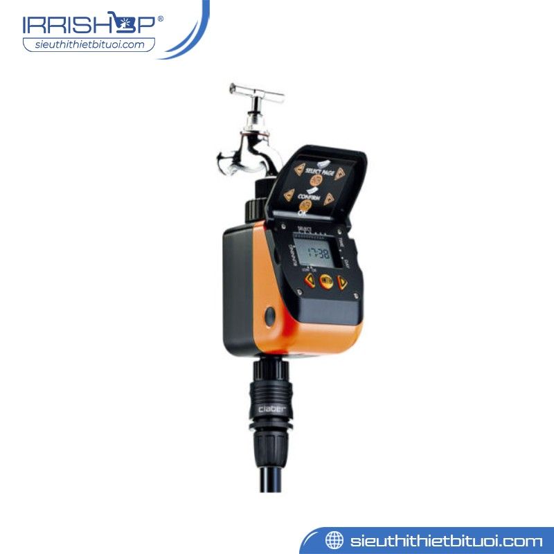 Claber Aquauno Video-6 Plus 8413 là bộ hẹn giờ tưới cây điện tử cao cấp đến từ Claber – Italy, thương hiệu hàng đầu thế giới trong lĩnh vực thiết bị tưới tự động. Với khả năng lập trình linh hoạt tới 6 chu kỳ tưới mỗi ngày và màn hình hiển thị kỹ thuật số trực quan, sản phẩm mang đến giải pháp tưới hiện đại, chính xác và dễ sử dụng nhất cho gia đình, biệt thự, sân vườn hay khu vườn đô thị nhỏ. Chỉ cần vài thao tác đơn giản, bạn có thể hoàn toàn yên tâm khi vắng nhà nhiều ngày mà cây vẫn được tưới đúng giờ, đúng lượng nước cần thiết.