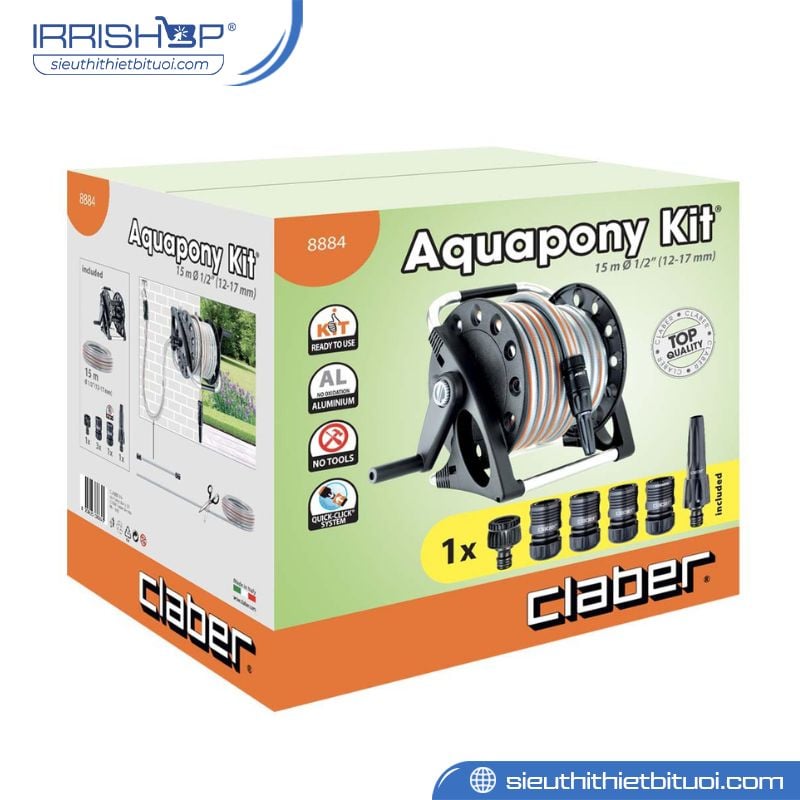 Bộ cuộn ống vòi Aquapony 8884 được bán với đầy đủ các bộ phận để tạo thành một thiết bị tưới cầm tay bán tự động gồm: 15m ống 1/2″ Bạc Elegant Plus, đầu nối vòi 3/4″ (20 – 27 mm) + nối vòi 1/2″ (15 – 21 mm), 4 khớp nối tự động, vòi tưới cây đa chức năng. Bạn sẽ không cần mua bất cứ linh kiện nào khác nhưng vẫn có thể lắp đặt một cách hoàn chỉnh nhất.